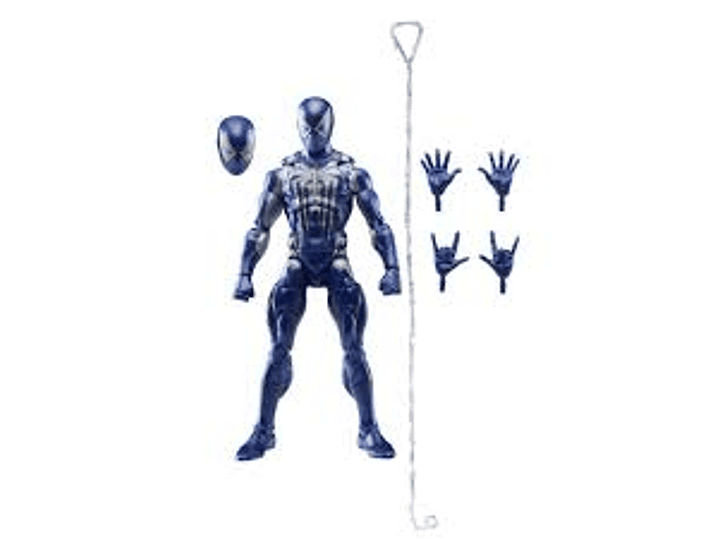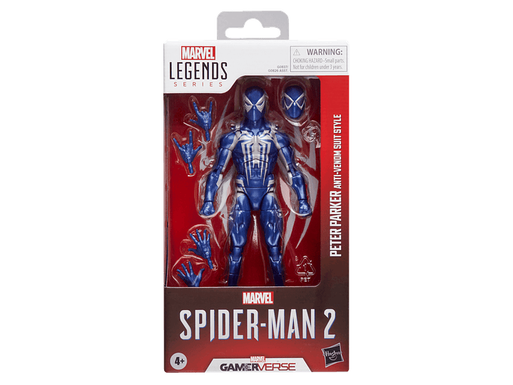 Se trata de Peter Parker luciendo el imponente traje Anti-Venom, directamente inspirado en su versión de los videojuegos 🕹️. Esta figura presenta un diseño en azul metálico y plateado ⚪🔵 que destaca por su nivel de detalle y acabado premium 💎.
